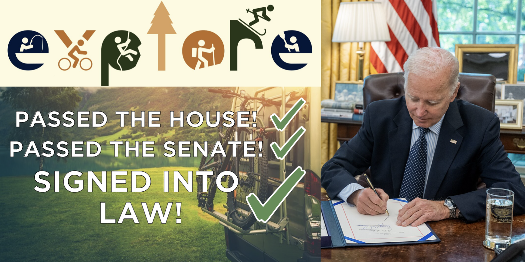 “With the EXPLORE Act now law, ORR looks forward to working with the new administration, Congress, state governments, Tribes, and local communities to support a cornerstone of our economy, public health, and quality of life, and all who rely on it. We are ready to get to work on implementation and enhancing access to the outdoors, modernizing recreation policies, and driving economic growth across the nation.”