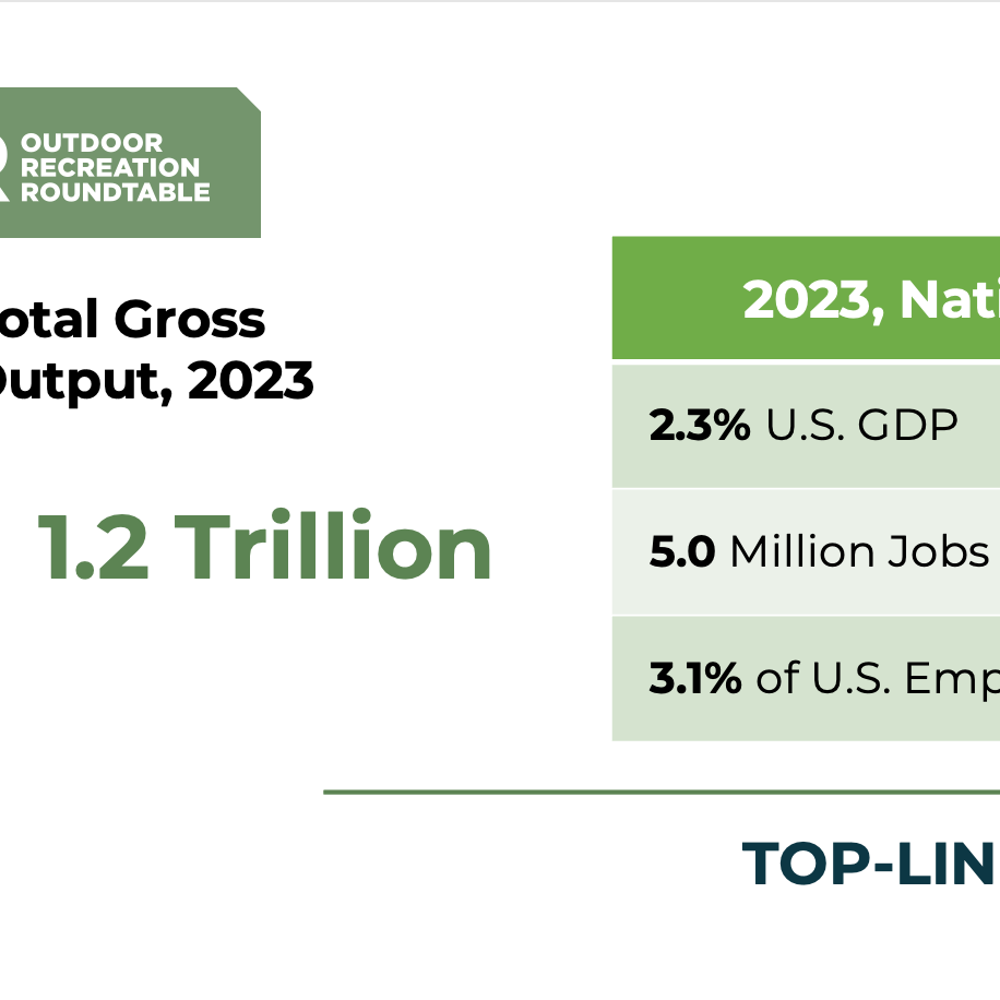 *Note: ORR uses BEA’s gross output numbers when showcasing the impact of the outdoor recreation economy and its sectors. Gross output represents all sales of goods and services, including those for intermediate inputs and those to final users. In the outdoor industry, this would represent sales of both intermediate and final goods and services like buckles, backpacks, reels, fishing rods, steering wheels, ATVs, guided trips, and many others. To learn more, click here.
